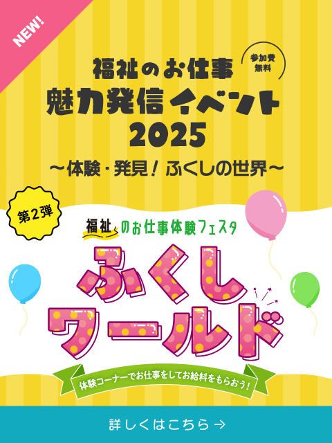 - イベント 「福祉のお仕事体験フェスタ ふくしワールド」開催します