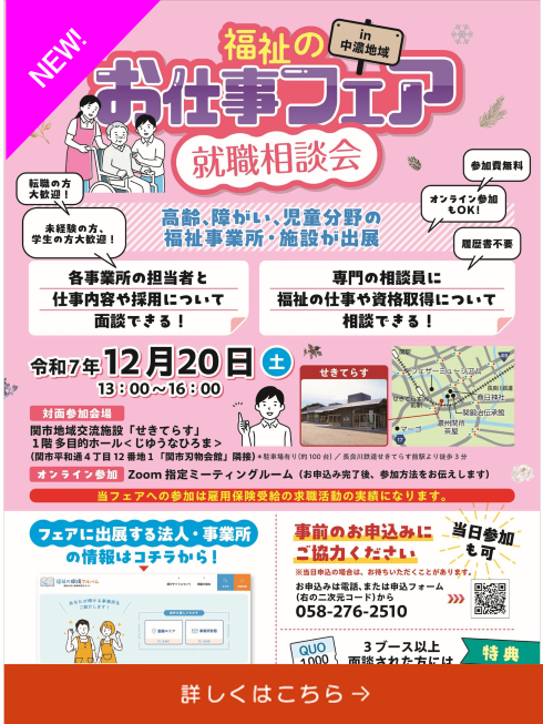 - イベント NEW 福祉のお仕事フェアin中濃地域 開催