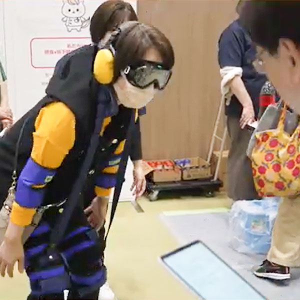 高齢者体験をして体の変化を知り、また、認定看護師の方たちから認知症や、摂食嚥下(食べ物を噛み砕き、飲み込む動作)について聞くことができます。