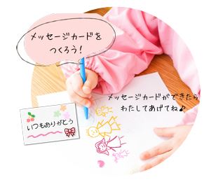 「誰かのために行動する大切さや喜び」お父さん・お母さん・きょうだいなど、日頃の思いを伝えたい相手のことを考えながら、思いを込めたメッセージカードを作ります。