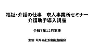 福祉・介護の仕事 求人事業所向けセミナー「介護助手導入講座」を開催しました(動画公開) 事業所の方へ2026年1月20日