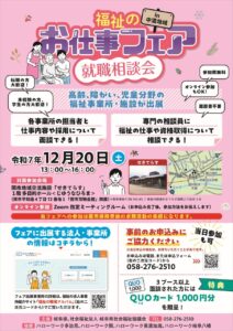 出展事業所の詳細は、「福祉の求人事業所紹介サイト」にて公開(12月上旬公開)