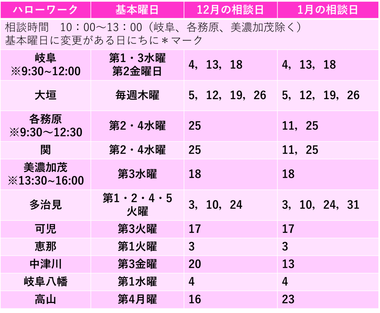 ハローワークでの出張相談<2月・3月の予定>