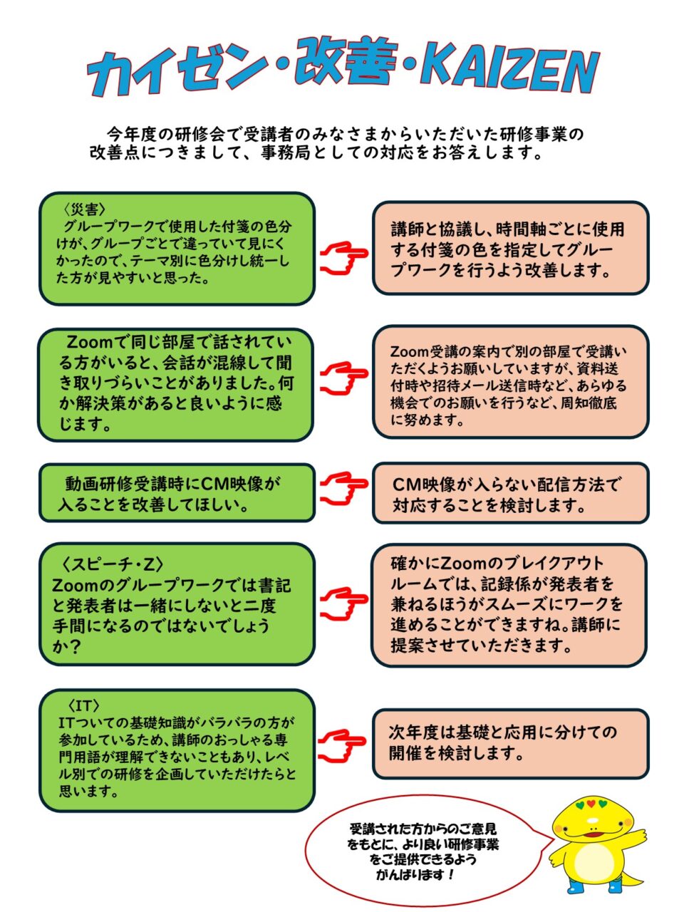 研修事業「カイゼン」します