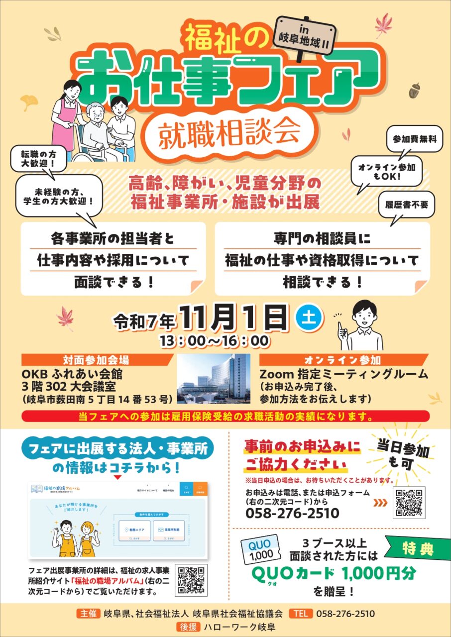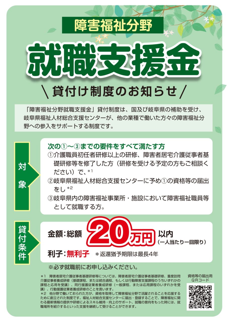 岐阜県福祉人材総合支援センター「めざせ福祉のお仕事」ホームページへ